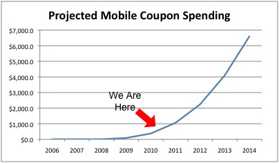 I found these statistics on gorumors.com , which project future growth of mobile coupon spending. While I think some of these statistics won’t scale (like redemption rates), it paints a pretty clear picture of what could potentially happen to the mobile coupon business. Here’s some info from gorumors: