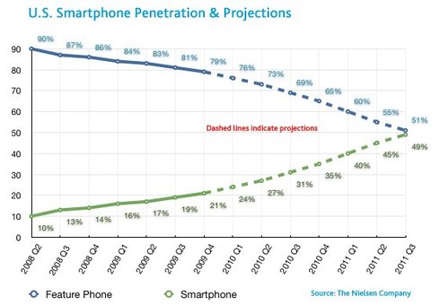 All of these check-in services (SCAVNGR, Foursquare, Gowalla, etc.) are clamoring for local advertising and coupon business; a market that may exceed $1 Billion in annual expenditures by 2012 assuming that smartphone penetration hits 50% as projected, and that smartphone users are all worth some nominal amount of local search through mobile (292.8 M wireless subscribers, 50% smartphone users, $5 in annual coupon each = $730 million)