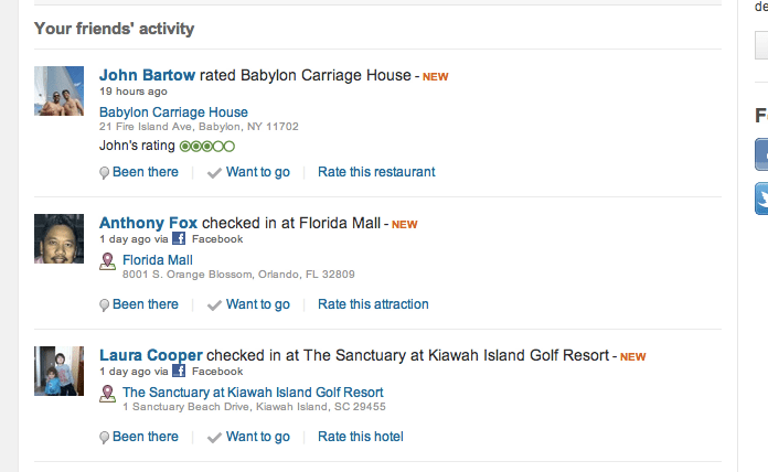 I’m noticing lots of companies trying to get early signal by ‘plugging social’ into their search results. A good example of this type of integration is Tripadvisor: